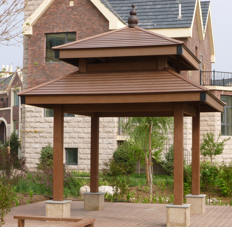 景區對戶外了涼亭的使用非常的多,越來越多的戶外工程項目都使用裝修市場上的許多新式材料,比方塑木復合材料就是其中的一種新式的材料。這些材料在出產進程中會運用許多細致的工藝,他們也愈加注重原材料的挑選,從而使出產的材料可以到達更好的運用作用,也可以可以取代傳統的材料被人們所運用。在現在看來,許多用戶都會挑選運用塑木涼亭復合材料,許多人對這種材料的運用略知一二,了解不是許多,以下是塑木涼亭材料運用作用的簡介。事實上許多裝修材料都可以滿意現代人的需求,但比較之下,可以發現一些材料的確存在許多缺陷。例如傳統木質材料的外表具有天然紋路而且材料相對較硬,可是該材料在濕潤的環境下,適應性并不好,影響材料的運用壽命,在裝置一段時間后會需求進行保護保養,這會增加運用本錢,費時吃力。塑木涼亭材料在運用進程中沒有這些問題,因為塑木涼亭材料不受濕潤環境的影響,材料的功能安穩,對裝置環境的要求低,所以在各種條件下都很實用。