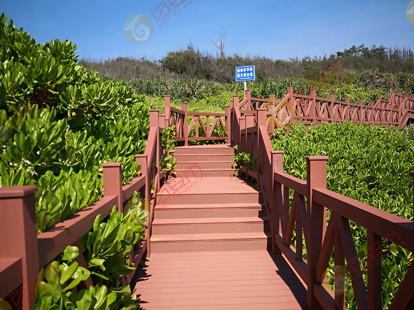 PVC共擠塑木地板材料的韌性和耐用性能大家有目共睹,基本上只要是人肉眼可見的地方都能看到它的身影。在人行橋梁、步道,平臺(tái)、棧道、陽(yáng)臺(tái)、庭院圍欄上應(yīng)用廣泛。蜿蜒在景區(qū)森林中的塑木地板仿佛是一條絲線,把沿線的道道美景串成了一根光彩矚目的項(xiàng)鏈。整個(gè)棧道,或石塊鋪地,或棧橋凌空。無(wú)論路、橋、亭、閣,都充盈著山林野趣。在建筑風(fēng)格上,它們樸素潔雅又靈活多姿。在棧道上,有的亭閣依樹而立,有的以樹為中柱,迥心式景亭。人們向樹小憩,臨閣觀景,別有一番風(fēng)味。正如你所見,塑木不僅在日常的庭院景觀,人們的家居場(chǎng)所中常見,旅游業(yè)這種大型的資產(chǎn)也逐步將塑木的應(yīng)用滲透其中。PVC塑木地板在景區(qū)中的應(yīng)用可是得心應(yīng)手。像塑木廊架是供游人休息、景觀點(diǎn)綴之用的建筑體,與自然木塑環(huán)境搭配很是和諧。