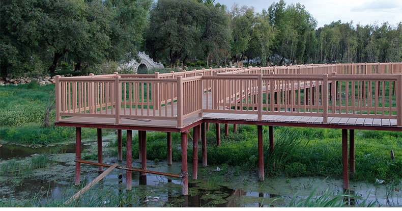 塑木棧道的仿木性能非常的強,它不僅具有傳統實木棧道的優點,同時也具備傳統防腐木棧道不具備的優點。如塑木棧道戶外使用的年限非常的長,可以用到20年以上,壽命上是傳統防腐木棧道壽命的8倍左右。同時塑木棧道安裝好,后期不需要任何人工的維護打理,能做到一勞永逸。塑木棧道自身的木質感非常的強,用在戶外能很自然的融入自然環境中,非常的美觀。下面是東莞塑木廠家合作的一些戶外棧道項目。
