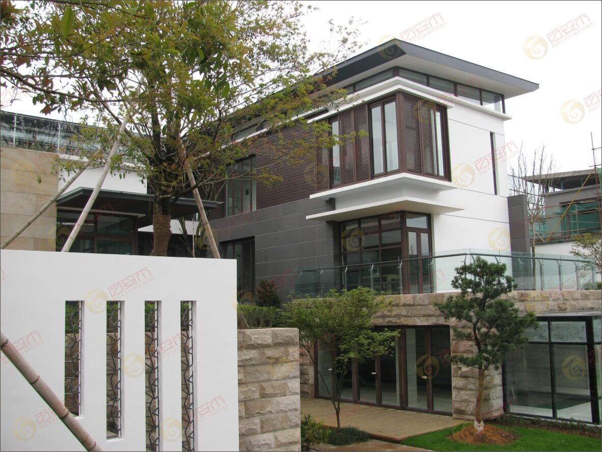 下面是共擠木墻板在杭州千島湖別墅項目上的使用,小編帶著大家一起用眼睛去感受共擠木墻板的精致之美吧。