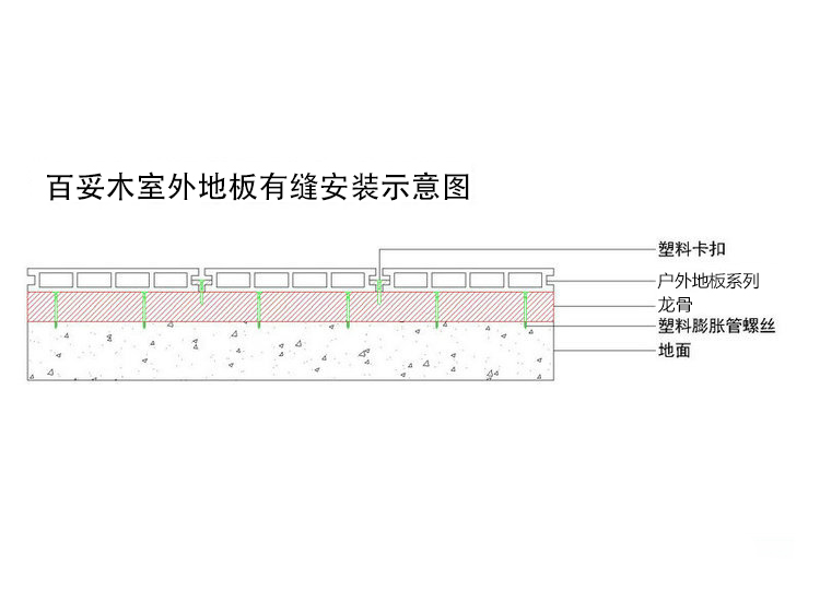 相對于傳統木地板的安裝,戶外塑木地板的安裝還是有些不同的。塑木地板的安裝主要是在找平的水泥地面上鋪設龍骨,龍骨上在鋪設塑木地板。在鋪設塑木地板的過程中,我們應該注意以下幾個點: